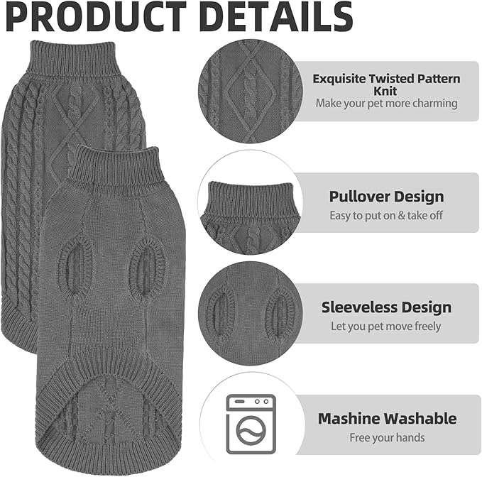 - CLASSIC TWISTED PATTERN KNIT - The classic and exquisite knitting design attracts the eyes and makes the cat more charming. This sweater will always remain fashionable and never out of date