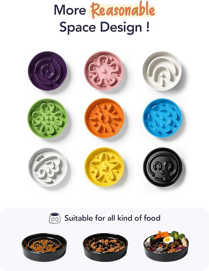 - Durable Ceramic, Prevent Your Dog From Eating Plastic: We found that plastic slow food bowls are easily damaged by dogs, they will bite and eat by mistake. The surface of the plastic will also fall off during use, which is not conducive to a healthy diet for dogs. We use ceramic material, strong and durable, not easy to damage, so your dog could enjoy his food safely and healthily