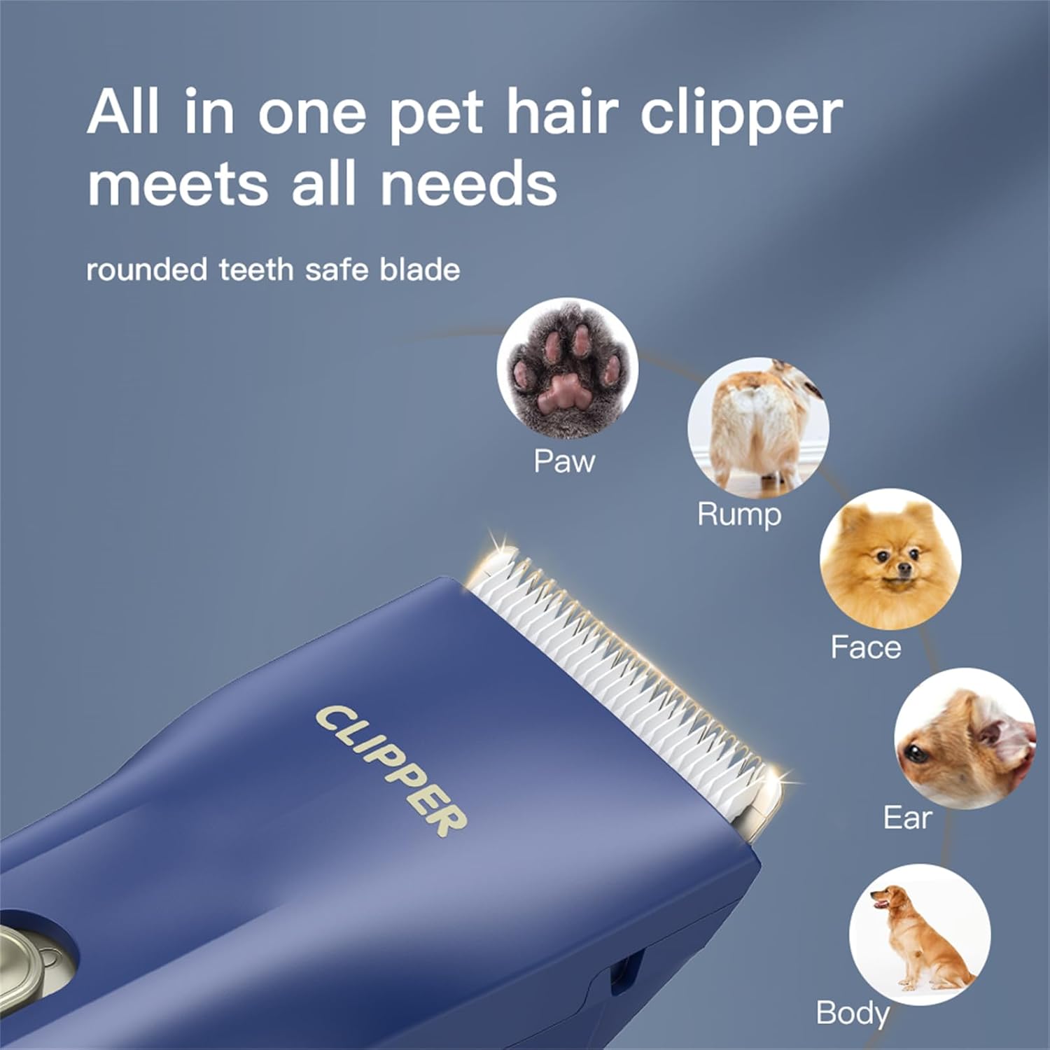 - PACKAGING AND WARM TIPS - Pet grooming clippers set include 1 x Blue Grooming Clipper; 1 x Power Charger; 1 x Cleaning Brush; 2 x Comb Attachments(3-6mm/9-12mm); 1 x Feet Hair Blade and 1 x Travel Bag. Meet the daily grooming needs of pets, no longer need to go to a pet grooming shop, saving time and money. Any questions please feel free to contact us, we always keep our strive to provide our customer satisfied shopping experience.