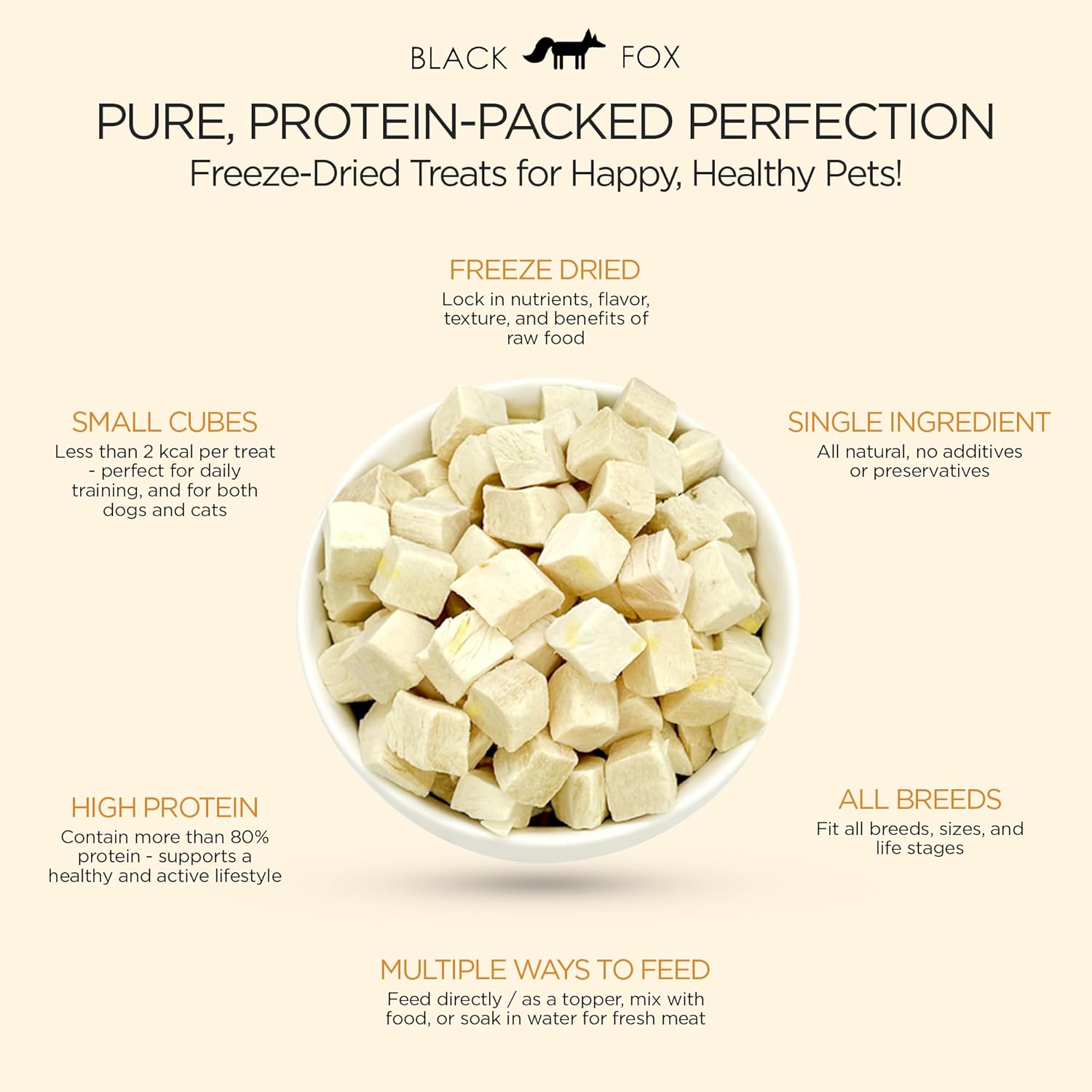 BLACK FOX Freeze-Dried Chicken Breast Training Treats for Dogs and Cats | 330 Treats, 4oz Single Ingredient, Raw, Healthy, All Natural, Human Grade, Recyclable Packaging