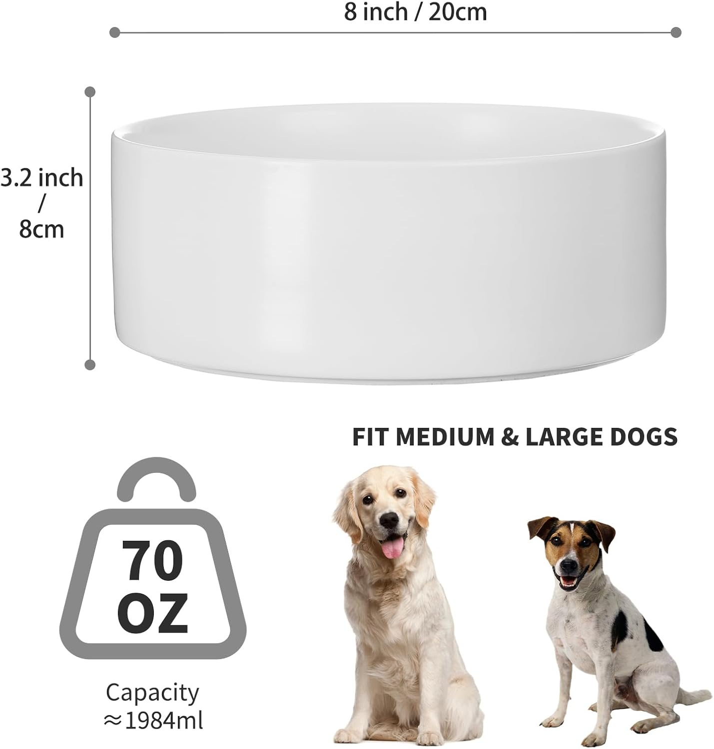 8'' Ceramic Dog Bowl - 70Oz Classic Dogs Food & Water Bowl for Medium and Large Breeds, Heavy-Duty Non-Slip Dog Dish, Food Grade Stoneware Pet Bowl, Dishwasher & Microwave Safe, White