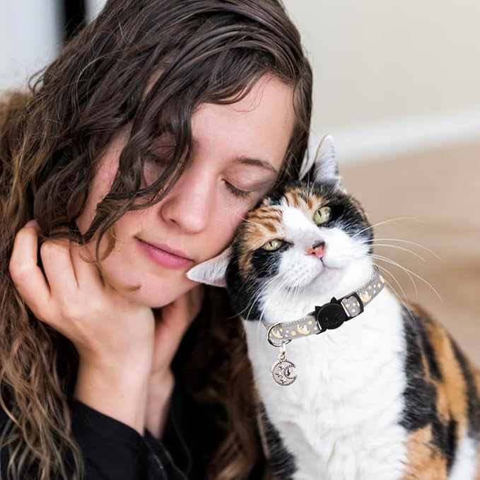 - ★Charming Pendant--Our kitten collars with lovely Moon Sun pendant makes your cat more unique, An ideal present for your cat definitely.