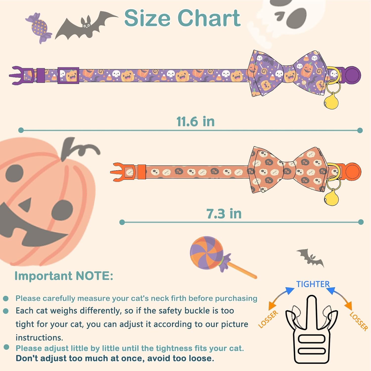 - ✔Halloween Style: This cute cat collar features a unique Halloween-themed design with colorful patterns including skulls, pumpkins,bats and more - perfect for your spooktacular celebration!