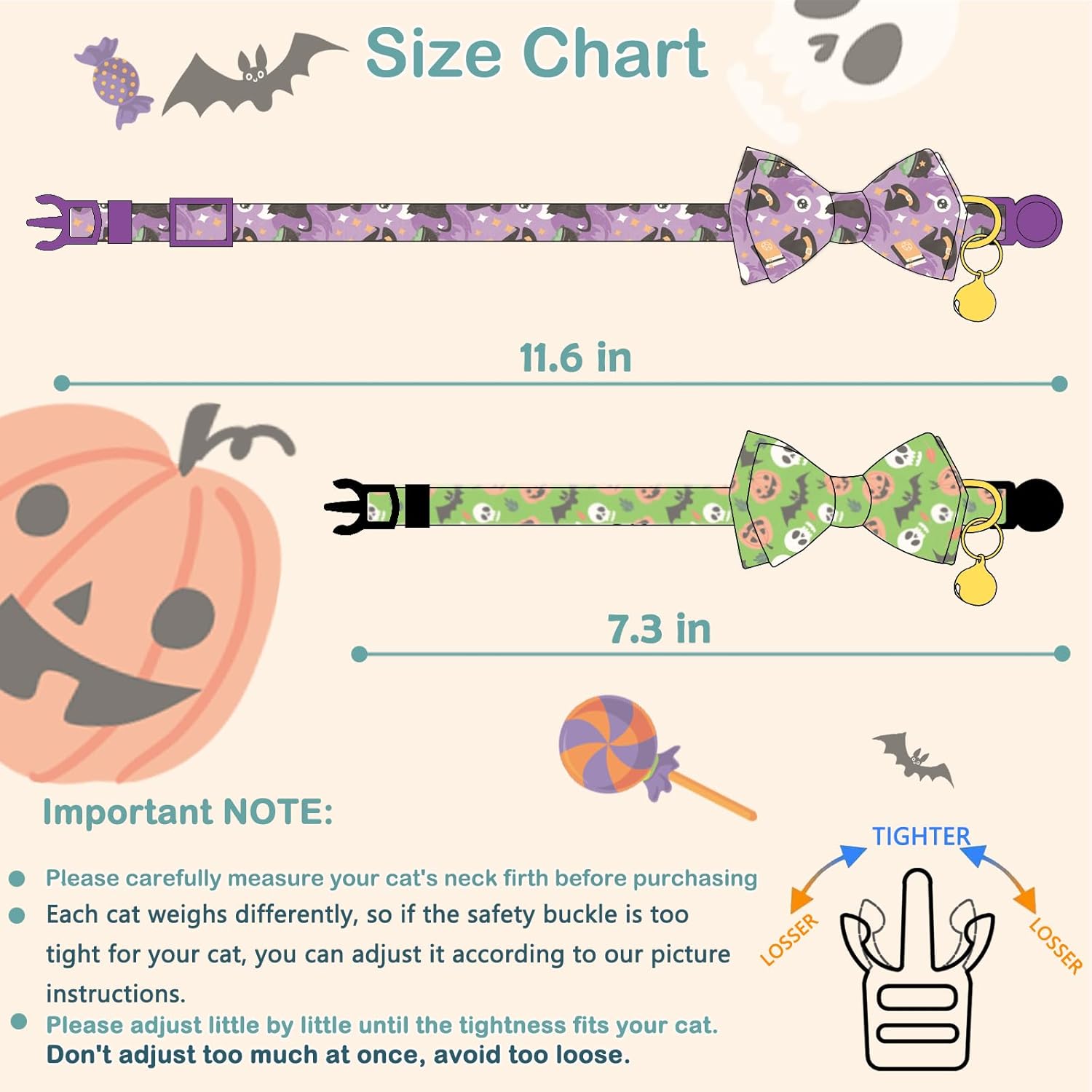 - ✔Halloween Style: This cute cat collar features a unique Halloween-themed design with colorful patterns including skulls, pumpkins,bats and more - perfect for your spooktacular celebration!