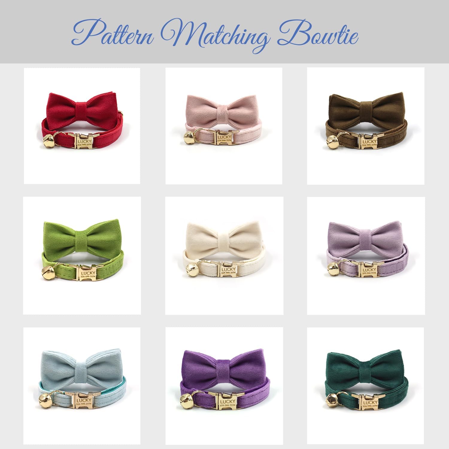 - Material: Made of Velvet and webbing fiber, with detachable bell, durable and comfort for your pet. The engraving on the buckle comes out pretty clear, fantastic and will not ruin or fade for durable use.