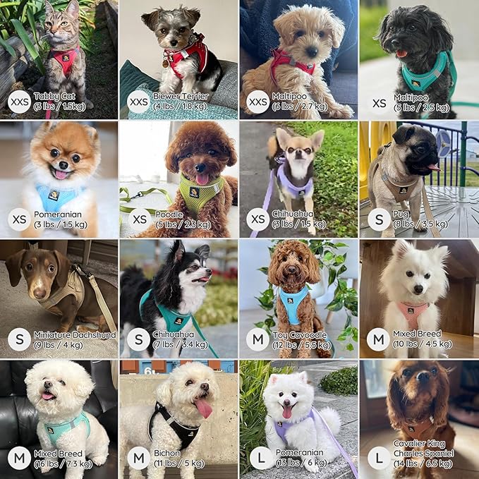 - 【Breathable Air Mesh】The puppy harness are made with soft mesh fabric, it’s lightweight but sturdy, easy to clean and quick-dry. The step in harness design make the pulling pressure distributed to the body to prevent choking.