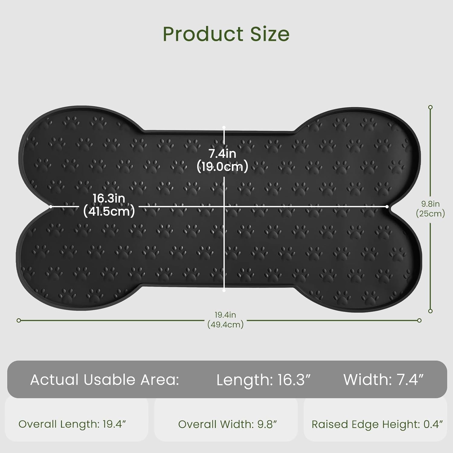 - Health Silicone Material - This pet bowl mat is non-toxic, and non-allergenic, protecting the health and safety of your pet's feeding. 19.4" x 9.8" holds two regular bowls, perfect for small to medium-sized dogs and cats to enjoy a delicious meal tray.