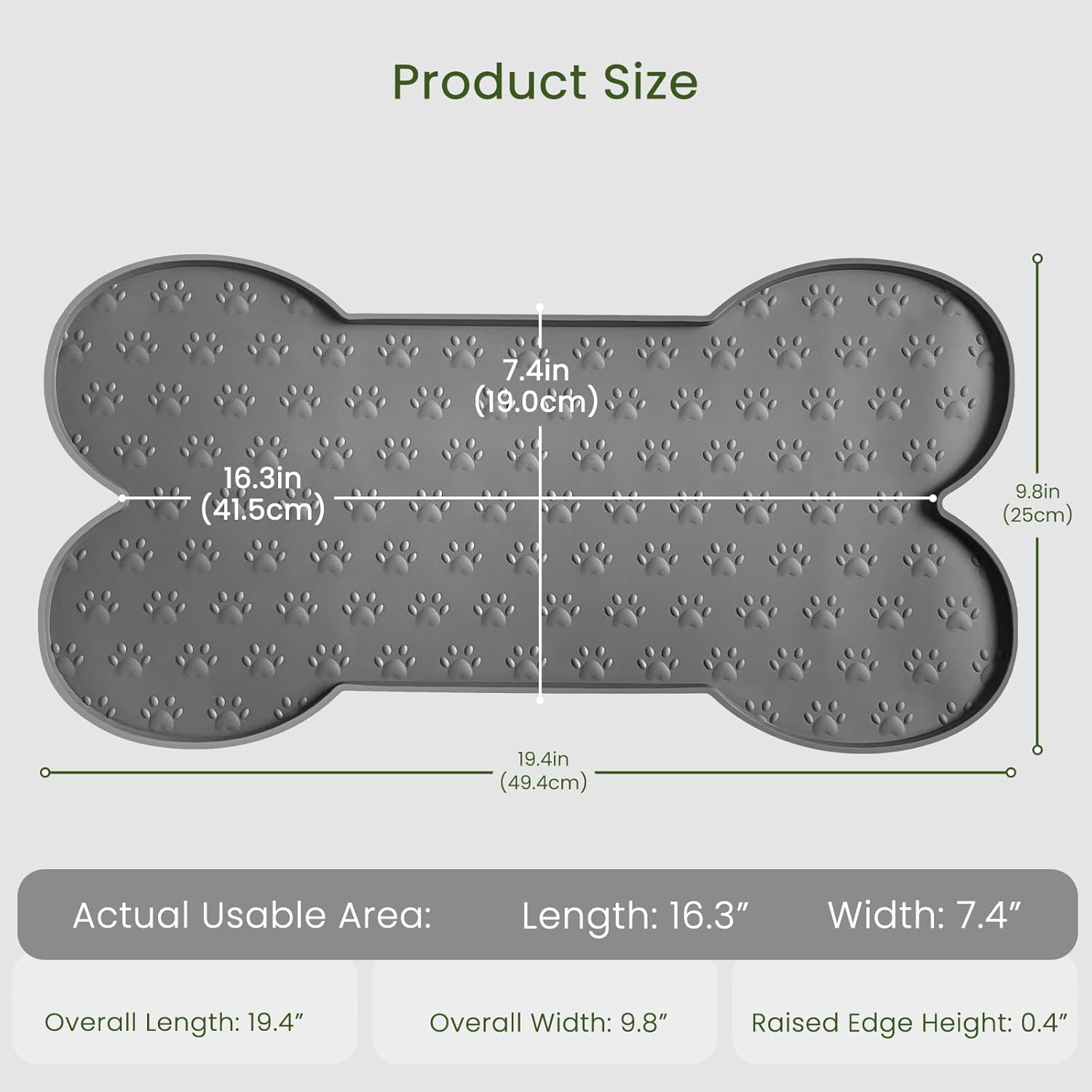 - Health Silicone Material - This pet bowl mat is non-toxic, and non-allergenic, protecting the health and safety of your pet's feeding. 19.4" x 9.8" holds two regular bowls, perfect for small to medium-sized dogs and cats to enjoy a delicious meal tray.