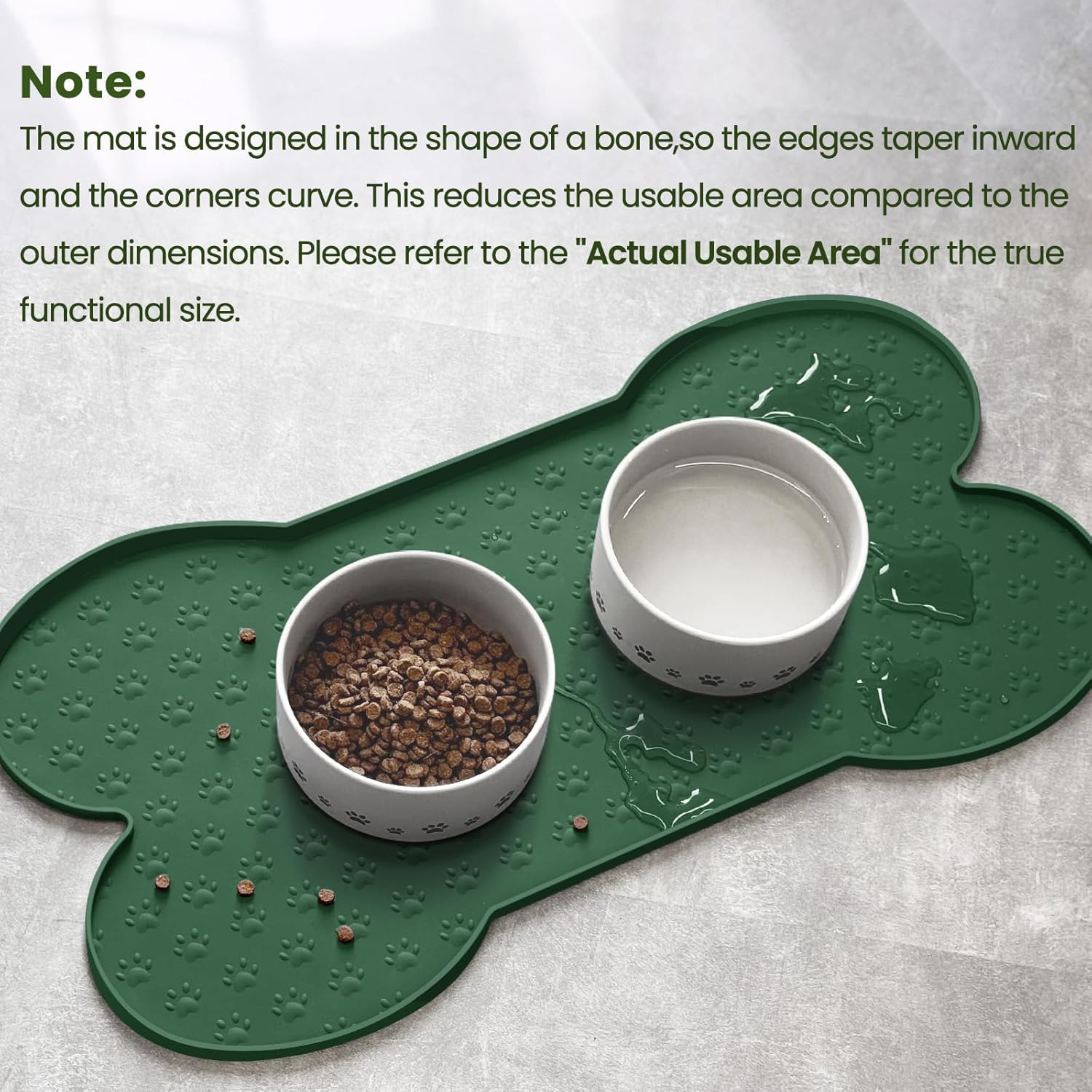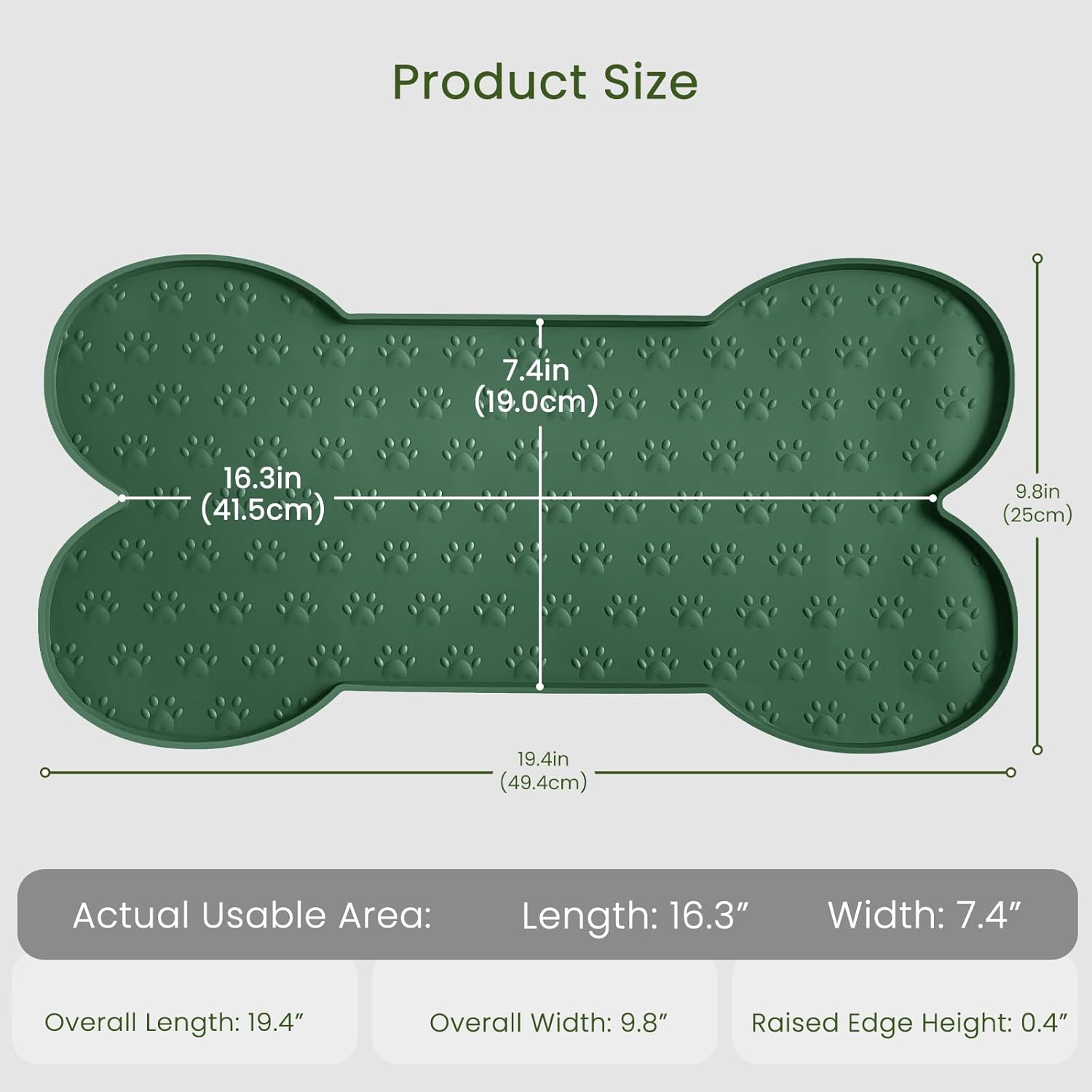 - Health Silicone Material - This pet bowl mat is non-toxic, and non-allergenic, protecting the health and safety of your pet's feeding. 19.4" x 9.8" holds two regular bowls, perfect for small to medium-sized dogs and cats to enjoy a delicious meal tray.