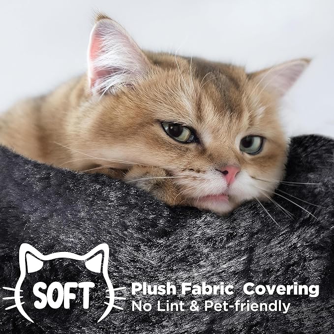 - For Every Safe Leaping: The 23.5″ L × 22″ W baseboard and robust posts give strong support and better stability to this cat tree. Comes with a safety strap to help prevent damage from intensive jumping and leaping by securing the cat tree to the wall