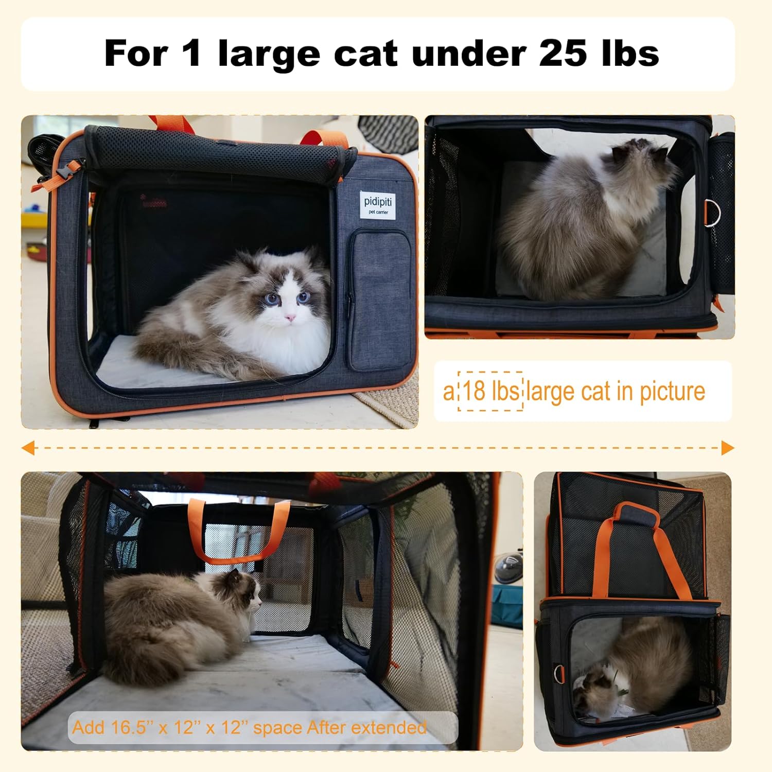 20 x 14 x 14 inches Expandable pet Carrier for 1 Large cat Under 25 lbs,2 Medium Cats/Rabbits 20 lbs+, 1 Small Dog Under 15 lbs,cat Crate/Bag for Short Trip/Long Distance car Travel