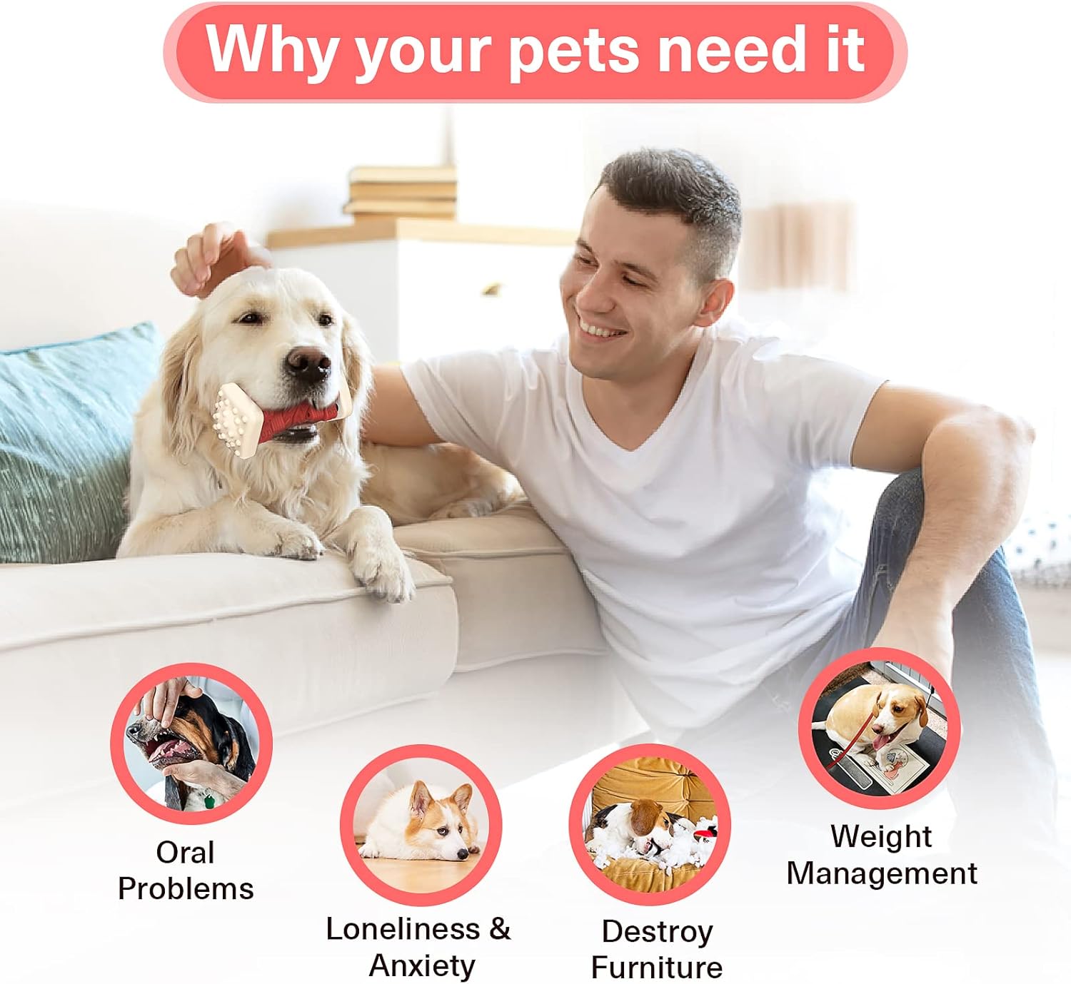 - Dog Chew Toys For Aggressive Chewers: This dog toys is made of natural rubber and tough nylon. They can help grind their teeth, relieve anxiety, train, and reduce damage to furniture or shoes, pet boredom and barking