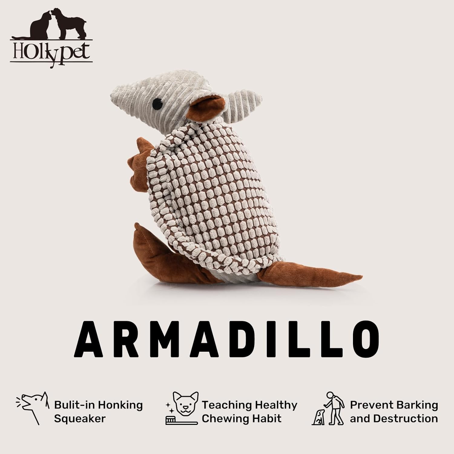 - Unique Sound - Hollypet Armadillo Squeak Toys (except 6 inch) make a sound that's not high pitched, but rather a unique and funny grunt sound that your furry friend will love. Unlike noisy bones, ropes, or other normal stuffed plush dog toys