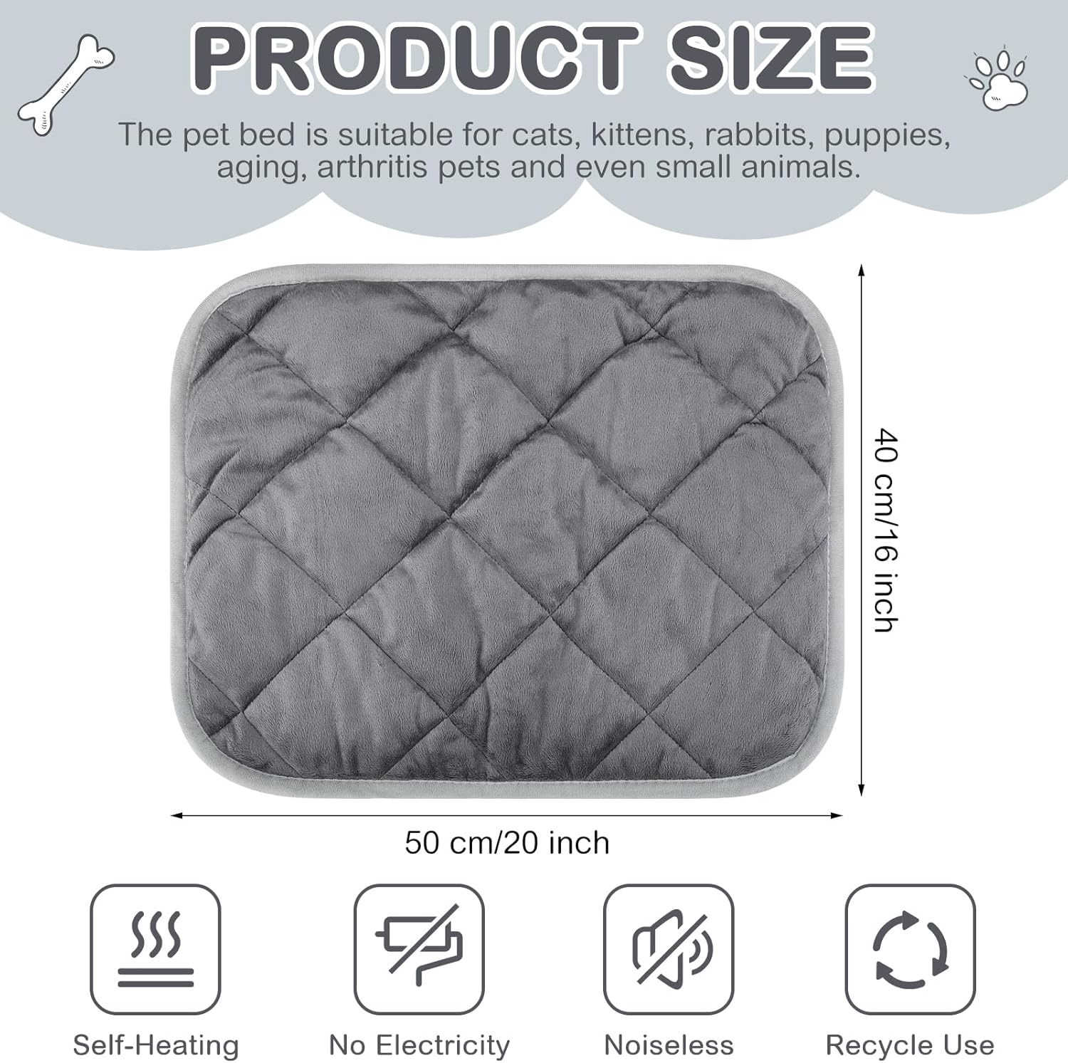 - Product Information: you will receive 4 self heating pet mats, which size is measured about 40 x 50 cm/ 16 x 20 inch; The pet bed is suitable for cats, feral cats, kittens, rabbits, puppies, aging, arthritis pets and even small animals, good to use on sofa, floor, pet beds, cat perches in pet cage, carriers, crate, kennel, playpen, and outdoor house, condos, shelter, enclosures, colony and more to rescue animals