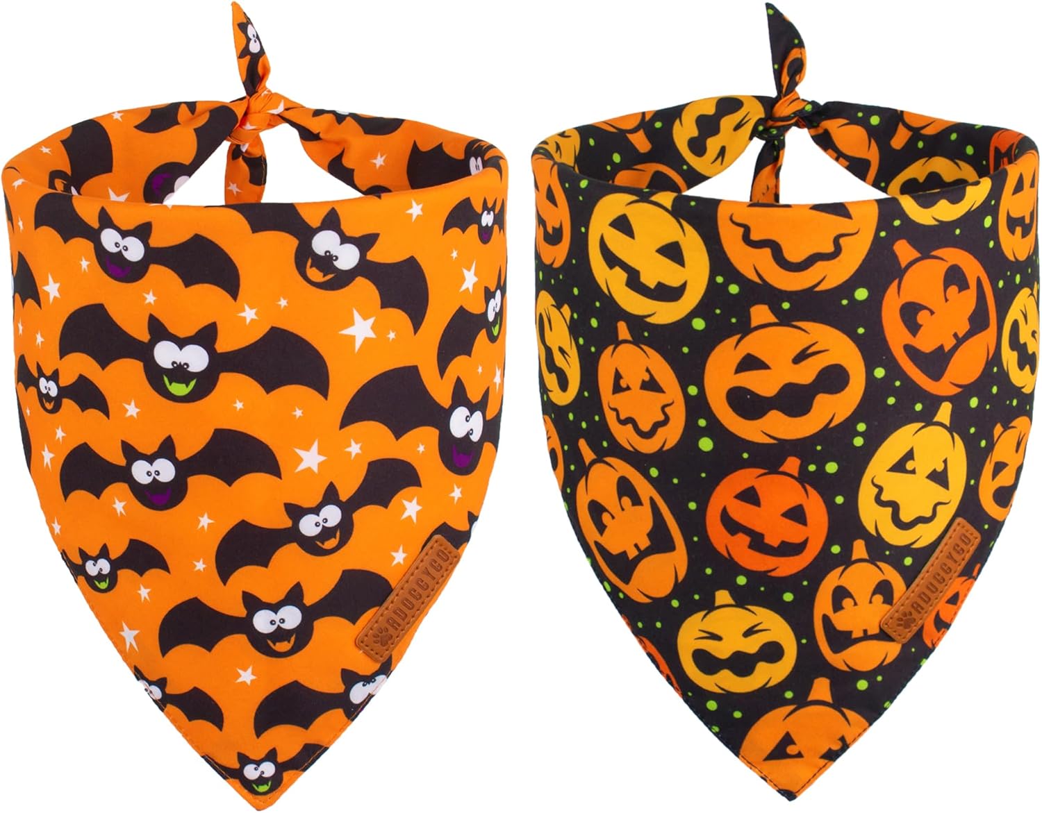 ADOGGYGO Halloween Dog Bandana, Pumpkin Bat Pet Scarf, Premium Durable Fabric, Adjustable Fit Halloween Bandanas for Small Dogs Cats Puppies (Small)