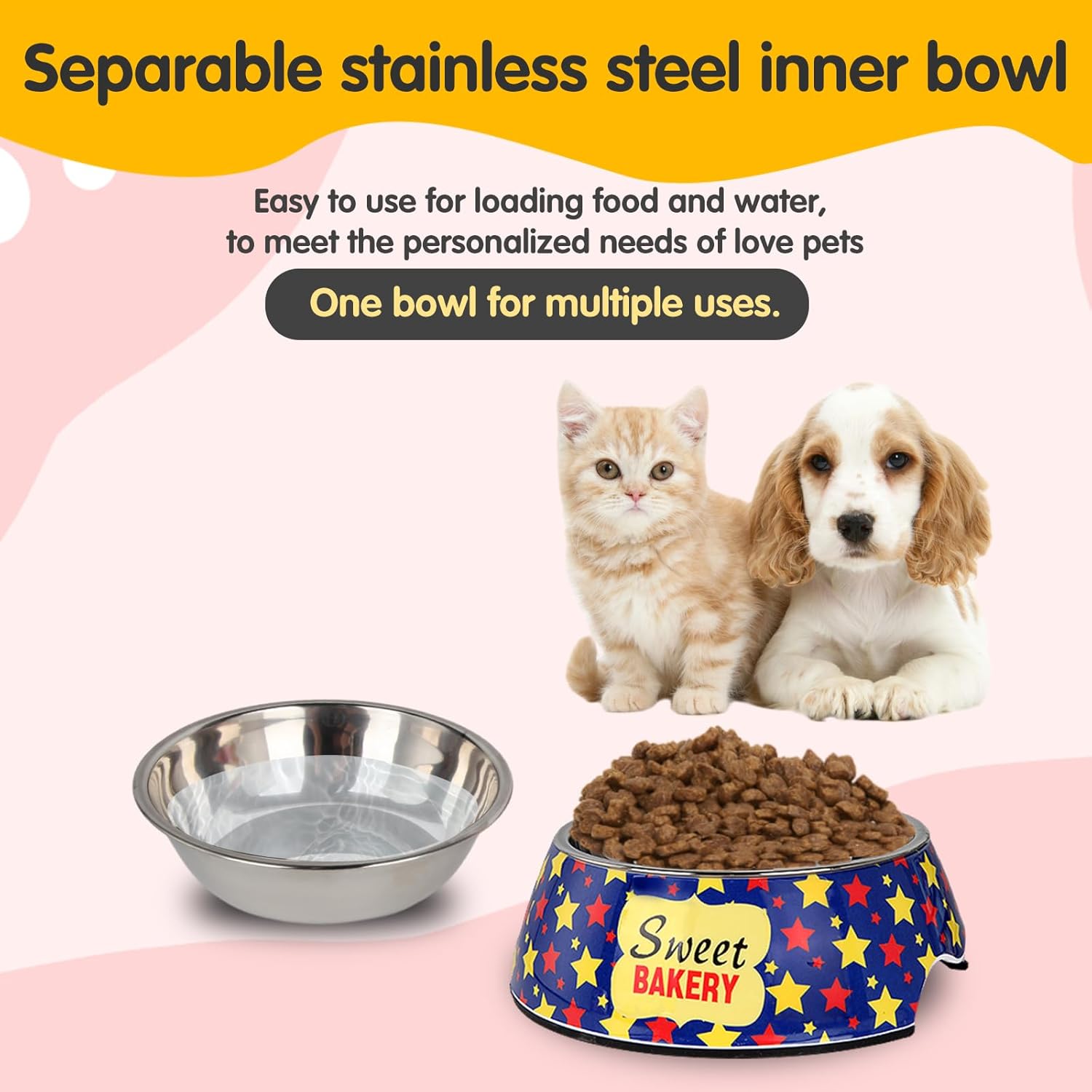 Pet 2 in 1 Food Water Bowls - Non Slip Skid Proof Heavy Duty for Dogs Cats Puppies - Cartoon Stars
