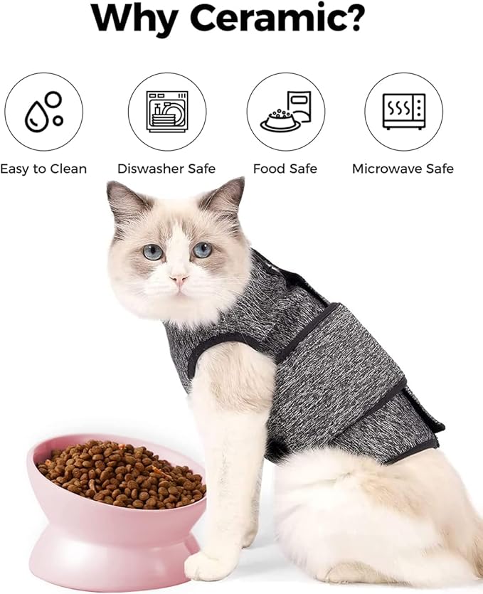 - ๐งธ Less Vomiting: the elevated cat bowl put a cat's mouth at a suitable position in relation to its stomach, it helps cat swallow more easily and alleviates their occasional vomiting.