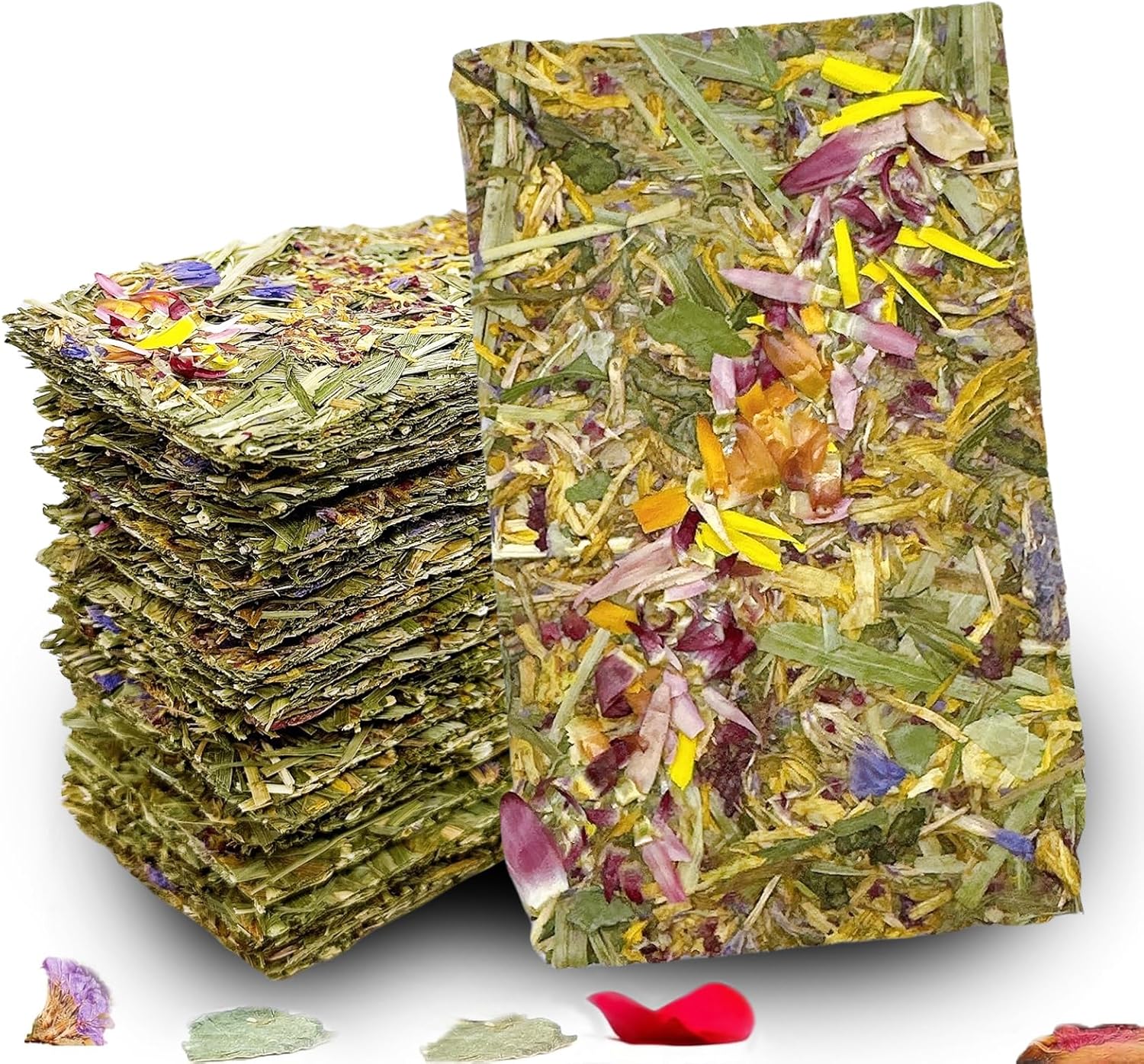 - [Natural Ingredients] Timothy Hay Chips ingredient rich blend includes timothy,apocynum, lotus leaf, stevia, dianthus leaf, calendula, rose flower, chamomile and and provide your critter with a full range of nutrition and keep their nibbling habits happy.