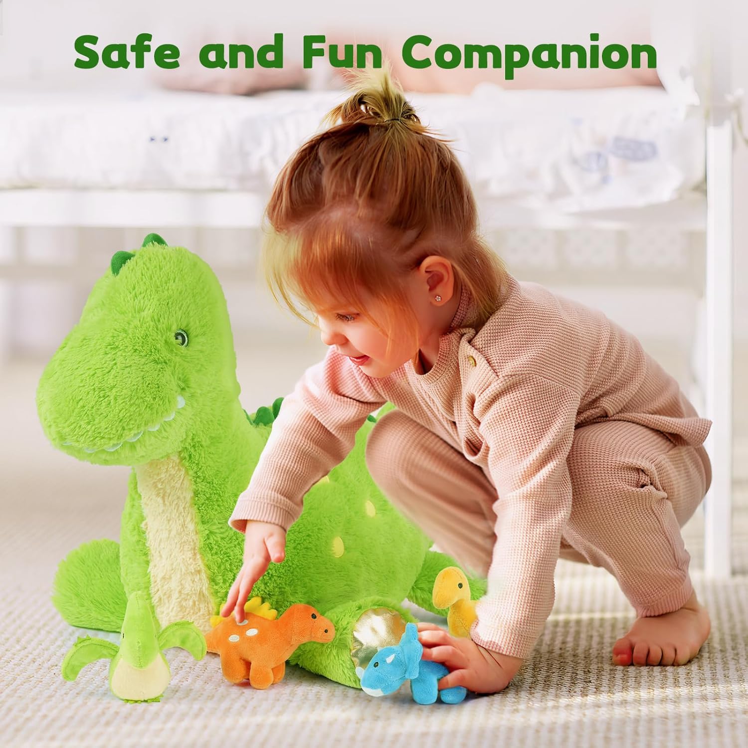 - ๐ฟDurable: Our dinosaur plush toys are made of high-quality plush fabric with exquisite workmanship, they are very durable, The zipper design on the belly allows for quick storage of toys after the game and keeps the room tidy.