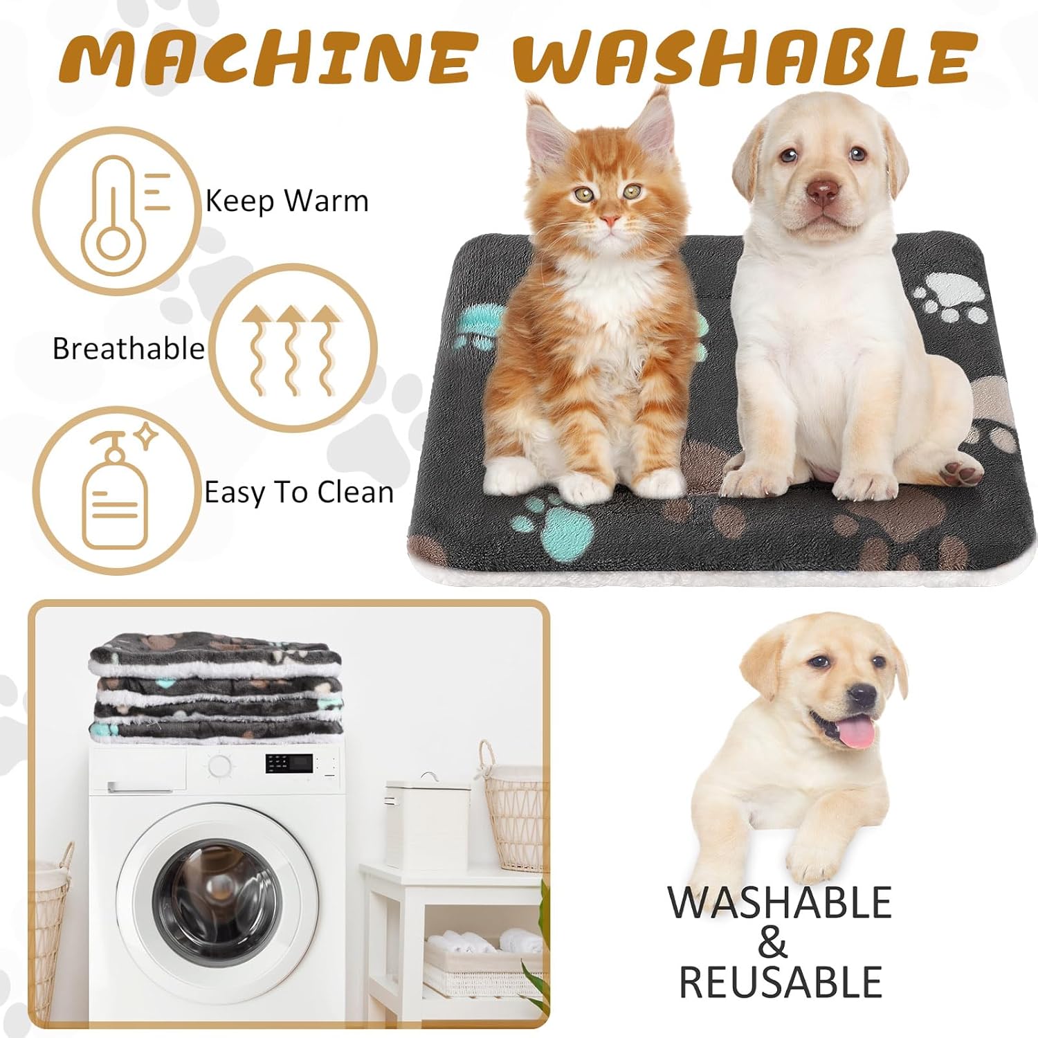 - Cute Design: these soft washable dog mats are designed with paw pattern in same colors, cute and adorable, bright and colorful, which will add some beauty to your dog crates and kennels