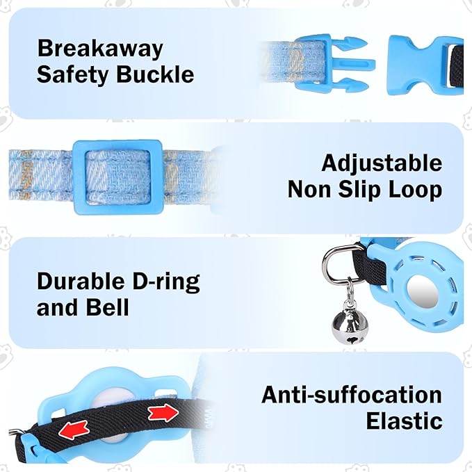 - CAT COLLAR WITH BELLS & BOWTIE- With a ringing bell, you can easily find your kitten. The removable bow tie makes your cat adorable and stylish. The light weight and waterproof design for the Airtag holder will keep your Airtag dry even if your pet gets wet. A cute cat collar can be worn in three ways, versatile and practical.