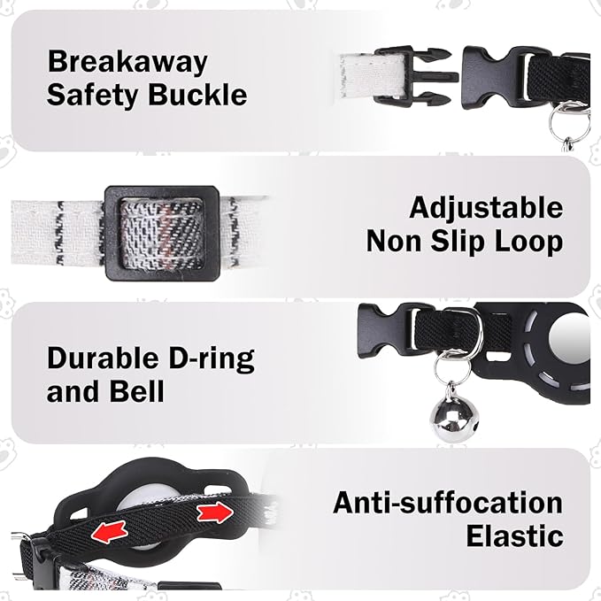 - CAT COLLAR WITH BELLS & BOWTIE- With a ringing bell, you can easily find your kitten. The removable bow tie makes your cat adorable and stylish. The light weight and waterproof design for the Airtag holder will keep your Airtag dry even if your pet gets wet. A cute cat collar can be worn in three ways, versatile and practical.