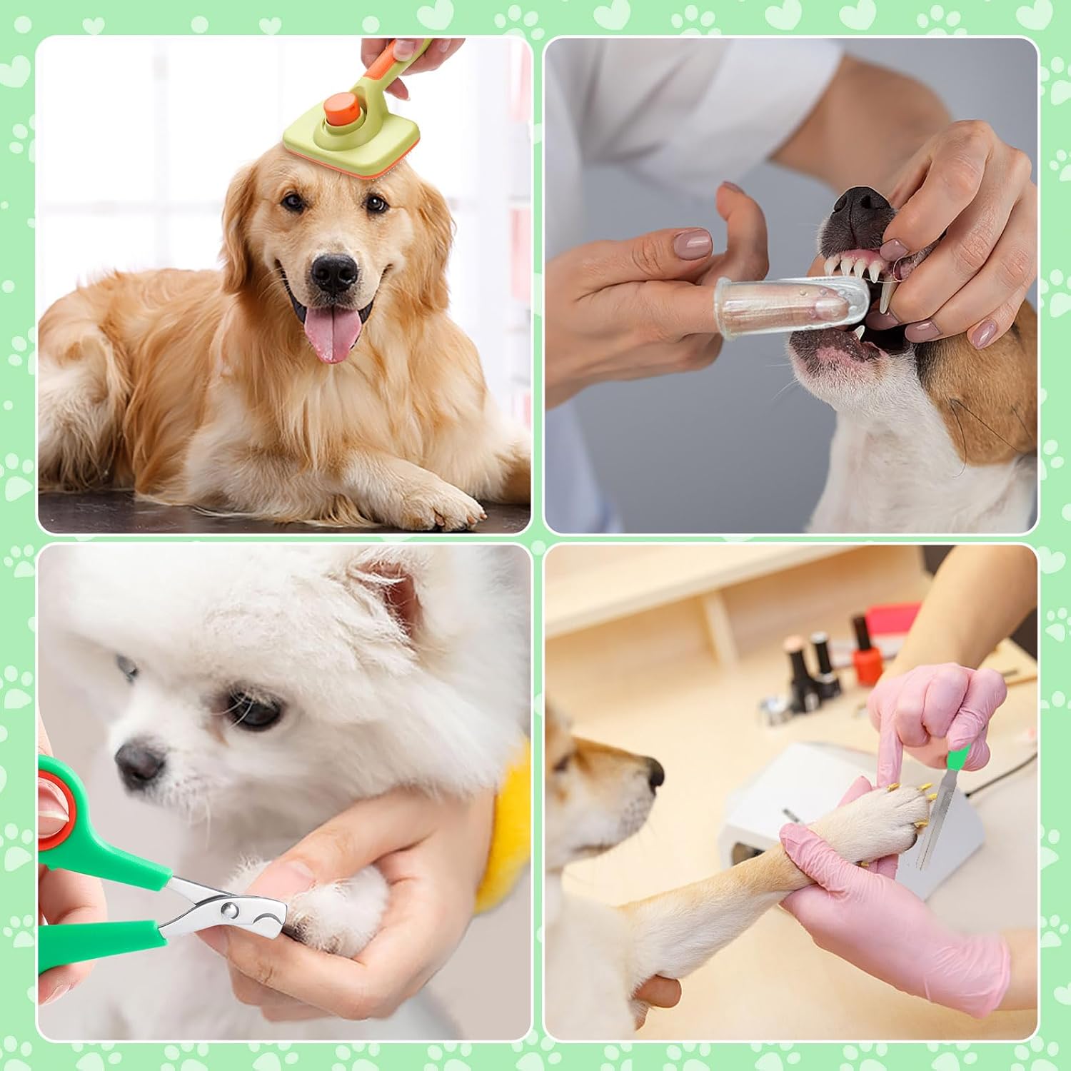 VCZONE 8 Pcs Dog Grooming Kit: Nail Clipper, Flea Comb, Shampoo Brush, Shedding Brush, Dematting Comb, Silicone Toothbrush (Green)