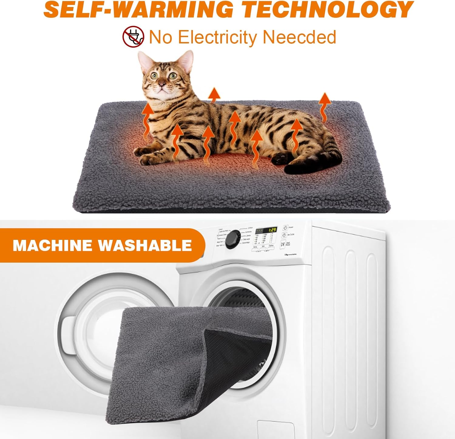 Rockever Outdoor Cat House, Large Outdoor Houses for Feral Cats with Self-Warming Mat Wooden Outside Cat Shelter Weatherproof with Escape Door