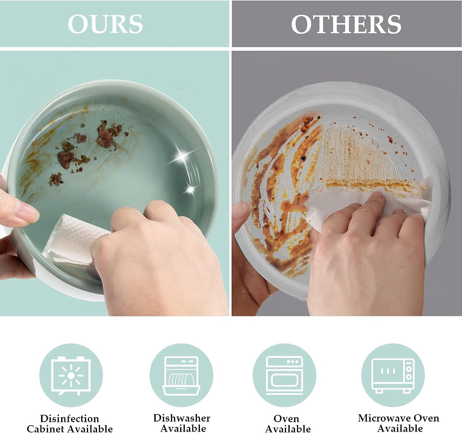 - [Capacity]:1.7 cups(400 ml, 13.5 Fluid Ounces) capacity of each single bowl, perfect for different breeds of kittens and adult cats, as well as small dogs