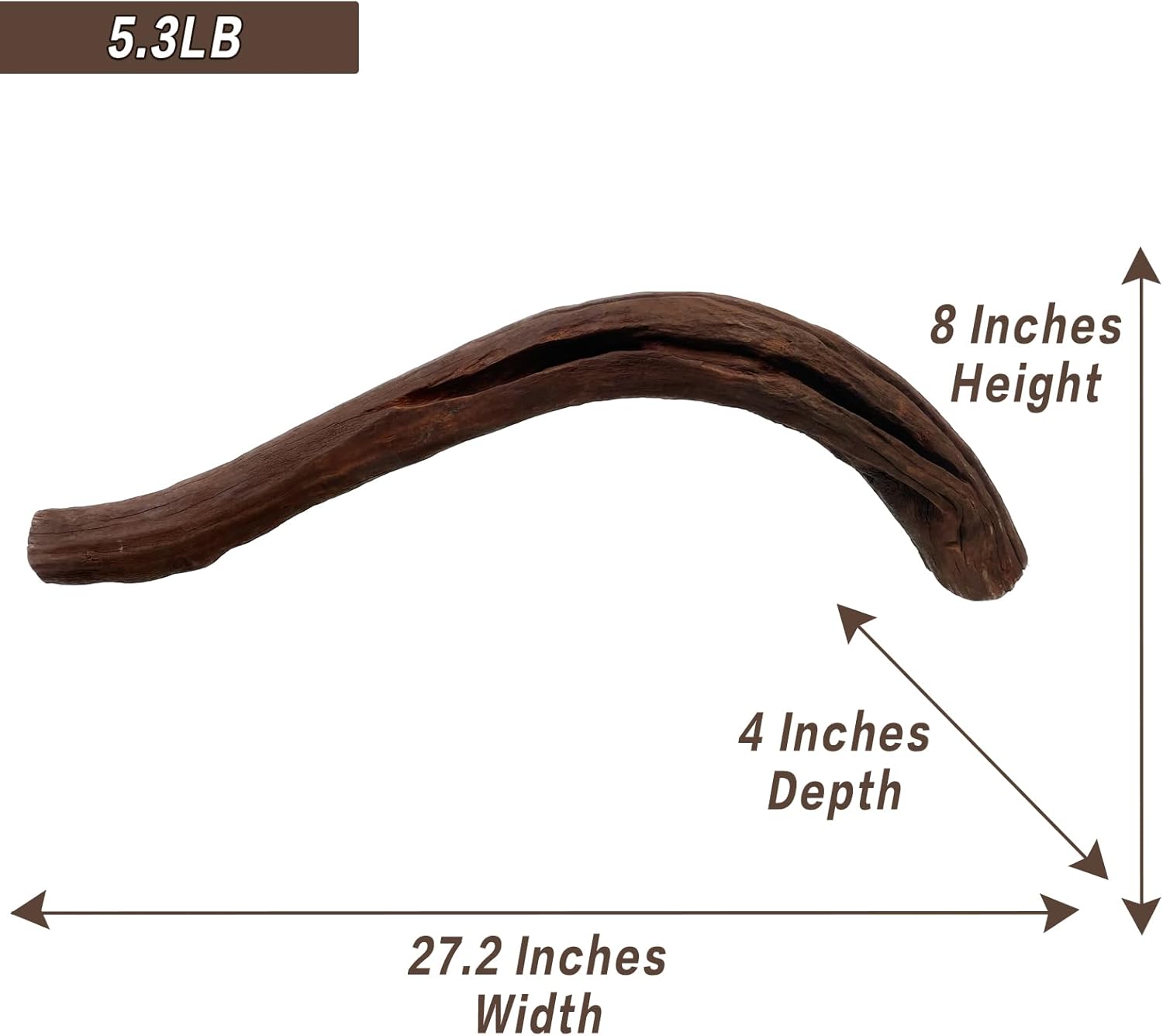 - FIXED SHAPE - Purple teak wood W27.2×D4×H8 inches, 5.3 lb. Shape as shown in the picture (Manual measurement, please allow about 1 inch margin of error for different angles). Natural driftwood formed by nature has unique shapes and textures, making them one-of-a-kind. These driftwood pieces are carefully selected to ensure quality and aesthetics. Our driftwood has a relatively large weight and density, allowing it to sink directly into water and provide hiding place for your aquatic pets.