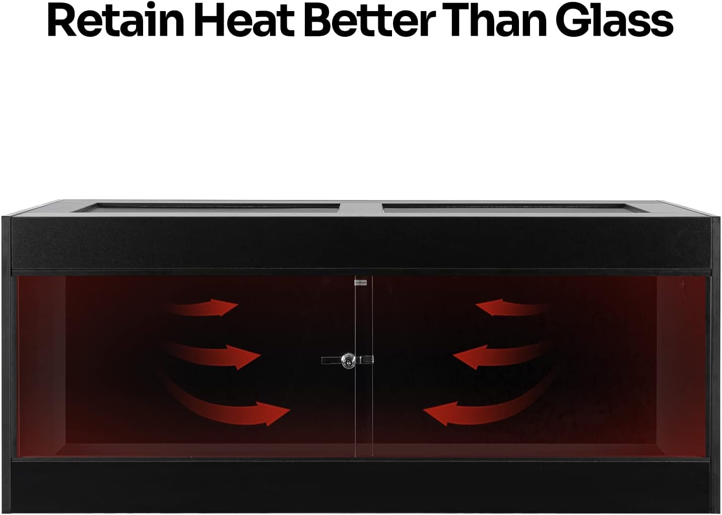 - 【Heat Preservation Better than Glass】Compared to glass terrarium, this thickened wooden reptile enclosure provides excellent heat insulation, more in line with natural reptiles environment. Black and non-reflective surfaces reduce stress in your pets.