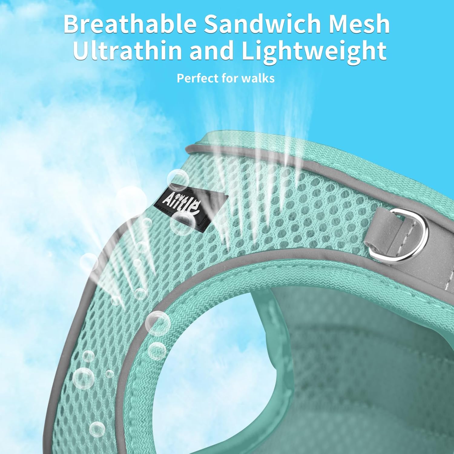AIITLE Comfortable Dog Harness and Leash Set for Walking - Summer Step in Vest Harness,Reflective Bands, Adjustable No Pull Puppy Essentials, for Small Dogs and House Cats Pure Turquoise XS