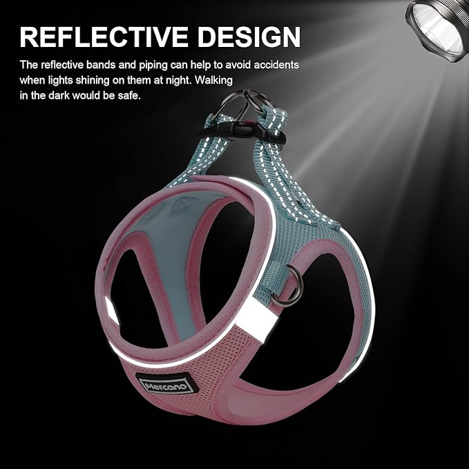Mercano Soft Mesh Dog Harness and Leash Set, No-Chock Step-in Reflective Breathable Lightweight Easy Walk Vest Harnesses with Safety Buckle for Small Dogs, Cats (L, Pink Blue)