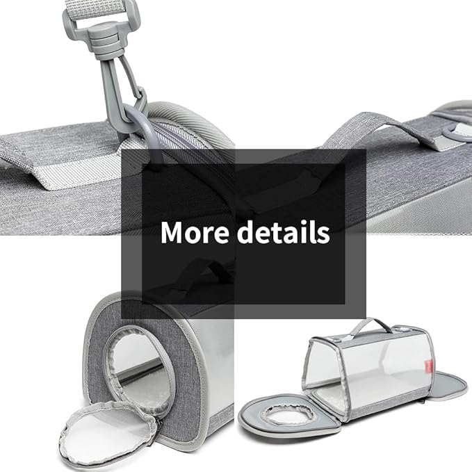 - 【Transparent Breathable Mesh Design】2 transparent mesh windows on the hamster carrier and 1 side opening mesh door are designed to ensure fresh air and air circulation for your furry child and they can enjoy the scenery. There is a side pocket which is very convenient for you to foldable bowls, toys and store food.