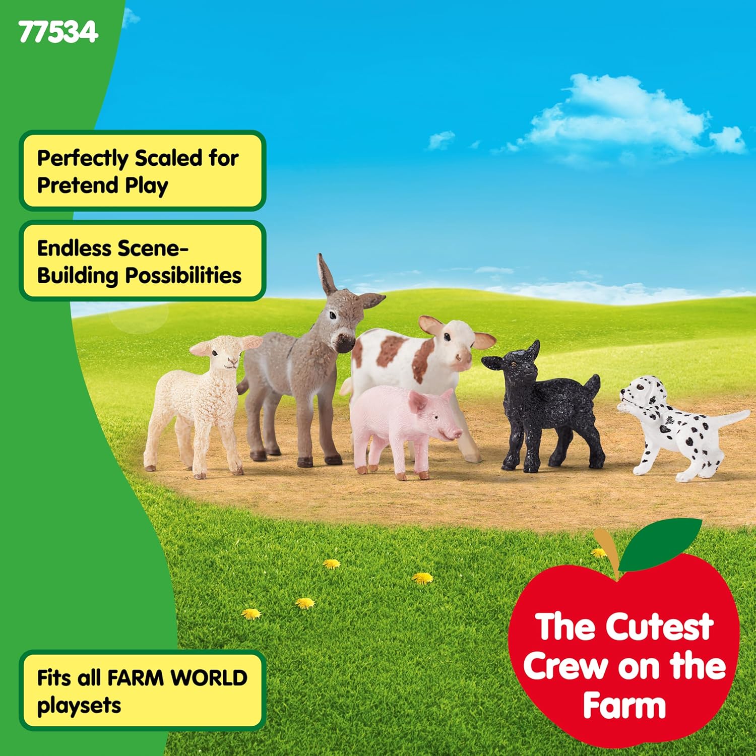 - 6 FARM FRIENDS IN ONE FUN SET - Kickstart farmyard adventures for your little animal lover with a dalmation puppy, pink pig, baby sheep, kid, donkey foal and baby cow toy animal bundle