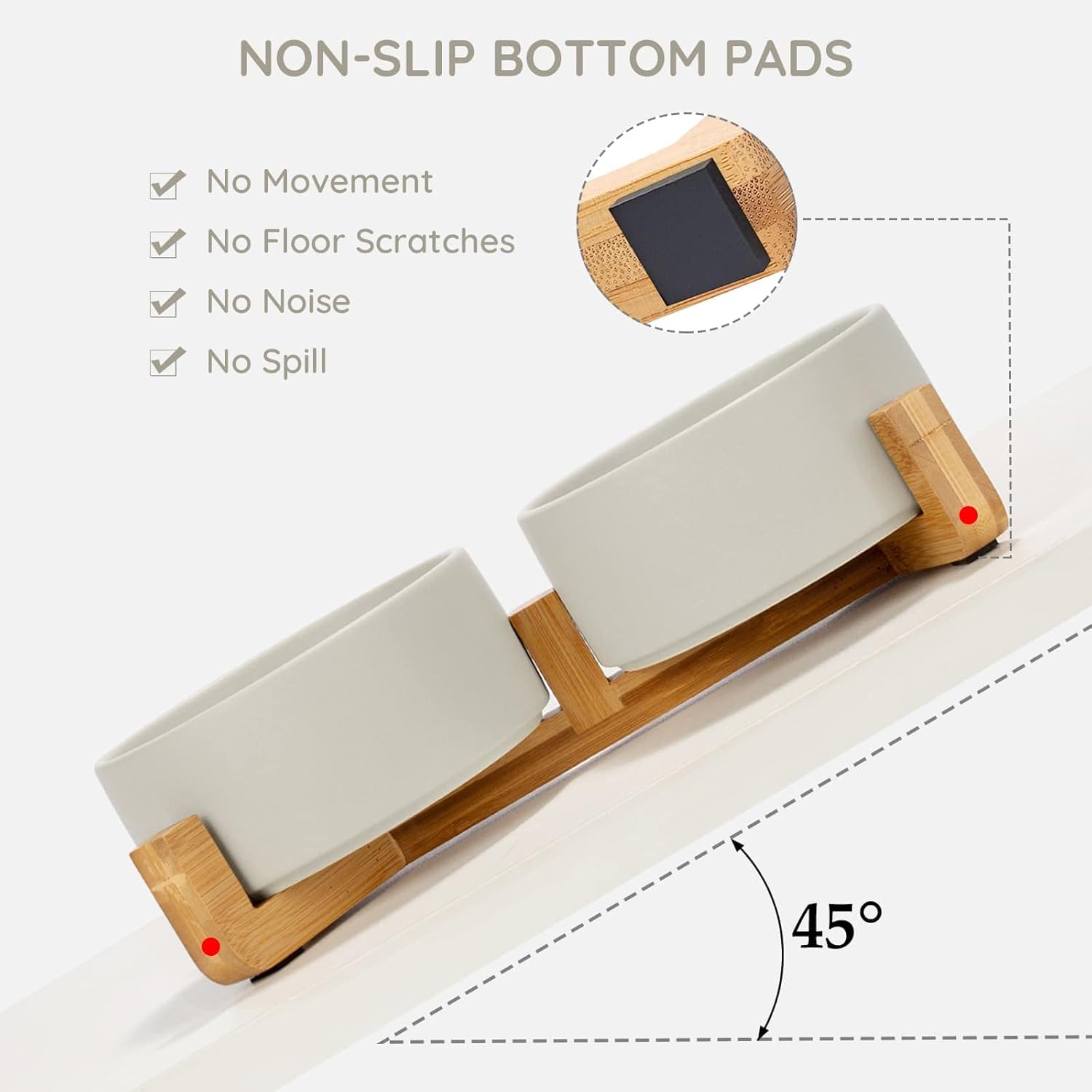 - [Natural Wooden Stand]:Unique wooden stand can effectively prevent food from spilling and keep the floor clean and tidy. Non-Slip bowl base, making it easy to pick up and put down