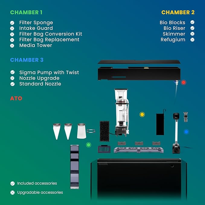 - Included Components : 1x UNS Rimless Tank, 1x Leveling Mat, 1x Media Riser Tray, 1x Filter Sponge, 2x UNS Bio Brick (Filter Media Block), 1x Submersible Water Pump, 1x Outflow Nozzle, 1x Back Chamber Lid 1x UNS Rimless Tank, 1x Leveling Mat, 1x Media Riser Tray, 1x Filter Sponge, 2x UNS Bio Brick (Filter Media Block), 1x Submersible Water Pump, 1x Ou… See more