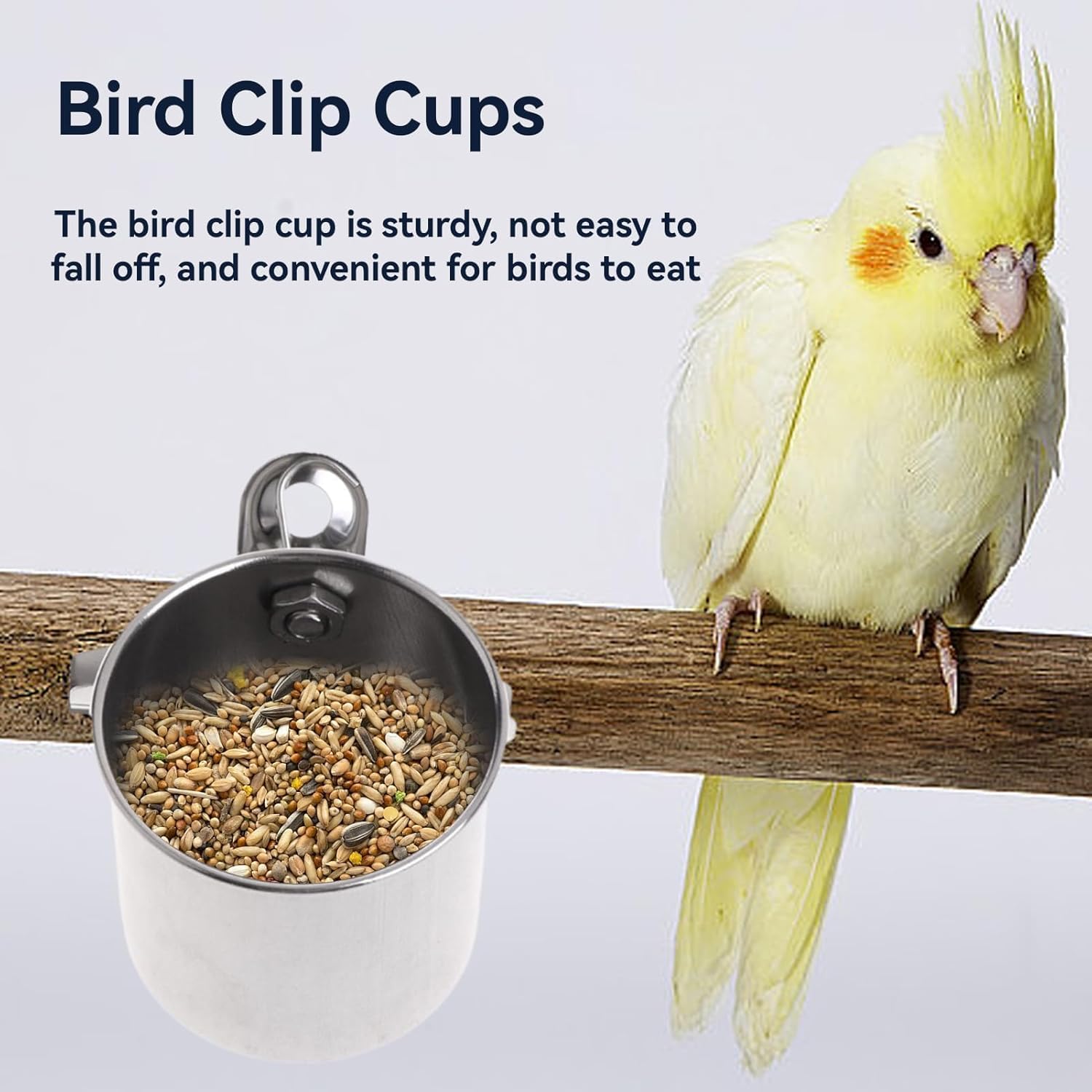- Come with the clip: Bird clip cups more firmer and easy for birds to eat or drink. The bird cup can be hung in the cage and it can be used to hold food or water to prevent your bird from accidentally dumping the food/water bowl