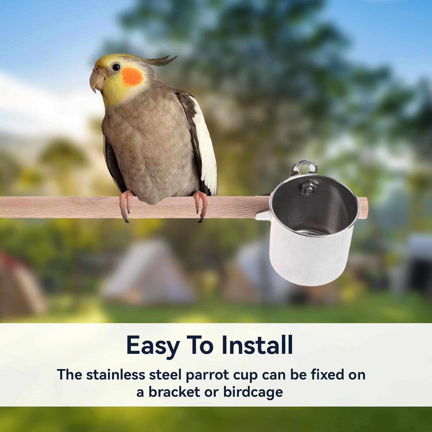 - Stand holder: Stainless parrots cup can be fixed on the stand holder or bird cage. parakeet cage accessories is easy to clean with water and does not require wasting time on washing and cleaning