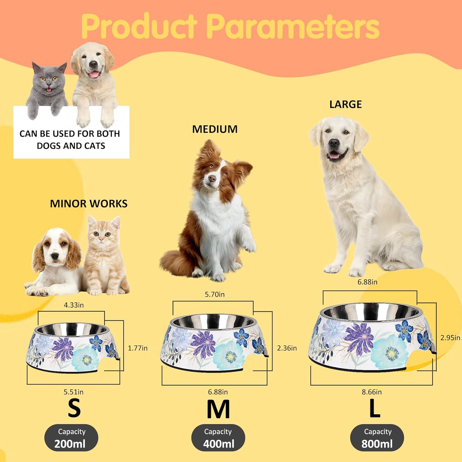 2 in 1 Food Water Bowls - Non Slip Skid Proof Heavy Duty Pet Bowls for Feeding Drinking Small Medium Large Dogs Cats Puppies (Blue Flower, M:14 OZ)