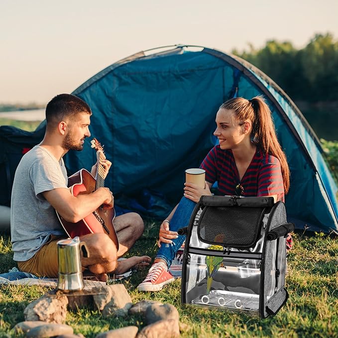 SUERTREE Bird Carrier Bag with Indestructible Stainless Steel Mesh, Bird Travel Cage with Stand, Easy to Clean Backpack for Parrot, Portable Bird Travel Bag, Pet Transparent Breathable Travel Cage