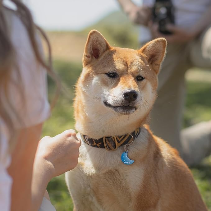 Anavia Small Size Dog Cat ID Tags, Small/XS Personalized Color Plated Stainless Steel Puppy Kitten Name Tags, Customized Engraved Nameplate Pet Collar Tag (Black, Moon)
