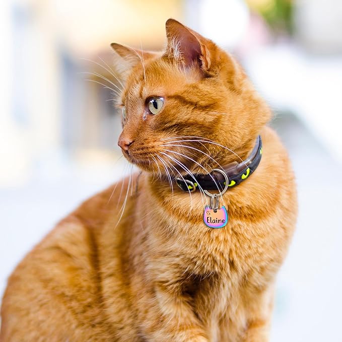 - Cute Font Design Pet ID Tags for Small Size Dog Cat - Personalized laser engraved pet tags with your pet's name, icons and pattern design. A well-designed cute fashion name tag for your beloved dogs, cats, or other pets.