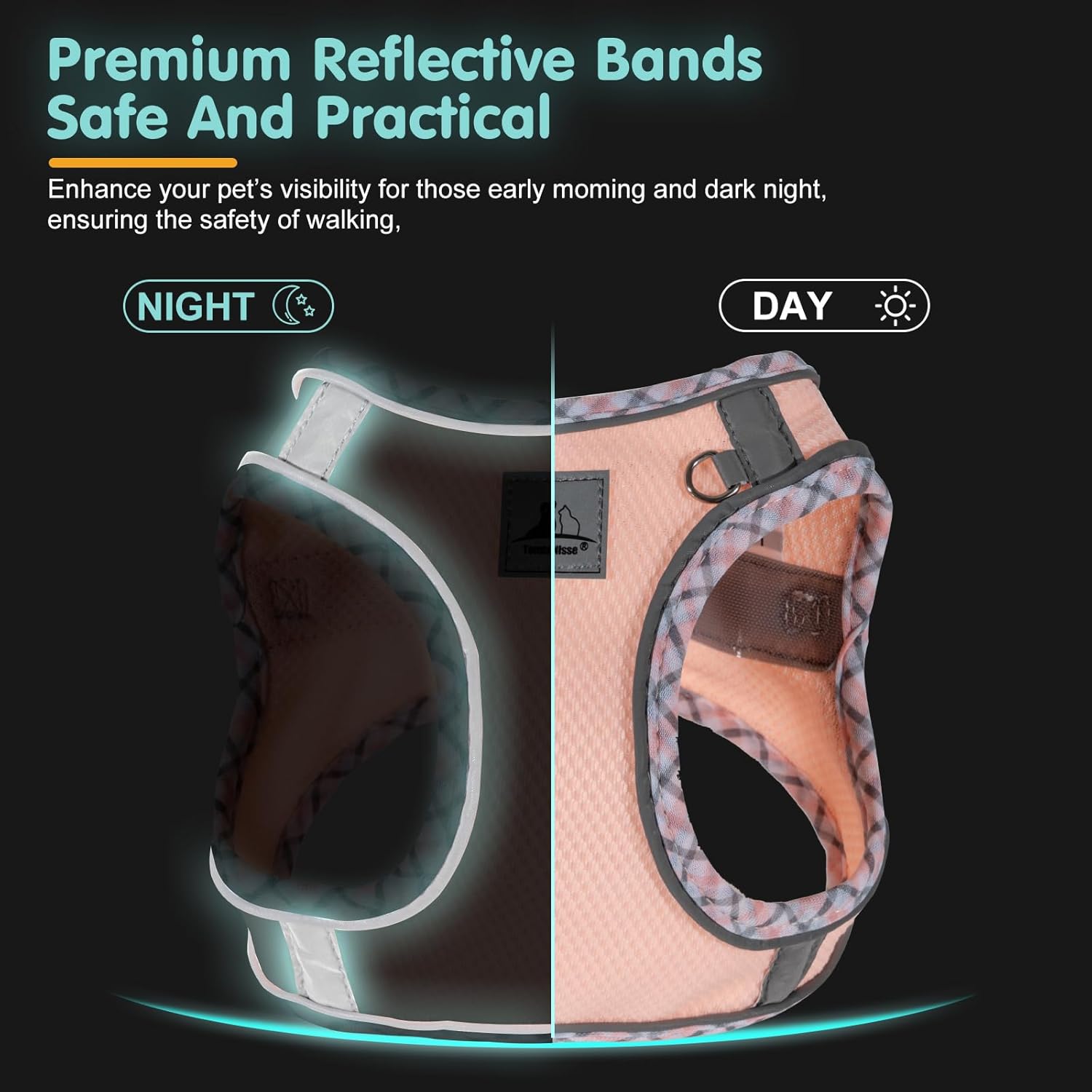 Dog Harness & Leash Set - No Pull Soft Breathable Small Dog Harness, Adjustable Reflective Step-in Vest for Puppy, Kitten, Cats