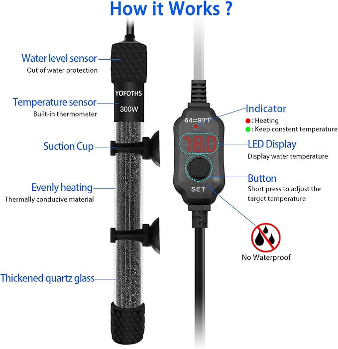 - External Controller: External temperature controller, no need to get your hands wet, no need to buy other controllers, 52 inch long power cord, easy to install, easy to control