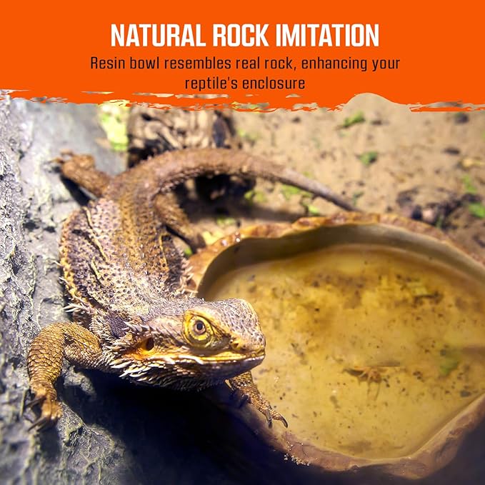 - RESIN ROCK DESIGN: Mimicking a natural rock appearance, the yellow reptile food dish enhances the visual appeal of your reptile's habitat. It not only adds an aesthetic touch but also creates a more natural and comforting environment for reptiles.