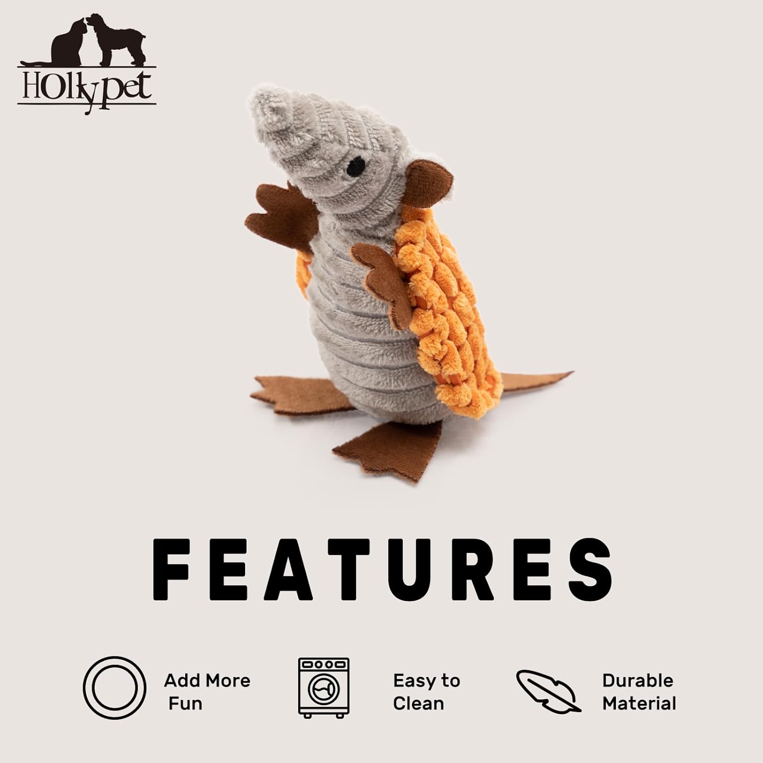- Unique Sound - Hollypet Armadillo Squeak Toys (except 6 inch) make a sound that's not high pitched, but rather a unique and funny grunt sound that your furry friend will love. Unlike noisy bones, ropes, or other normal stuffed plush dog toys