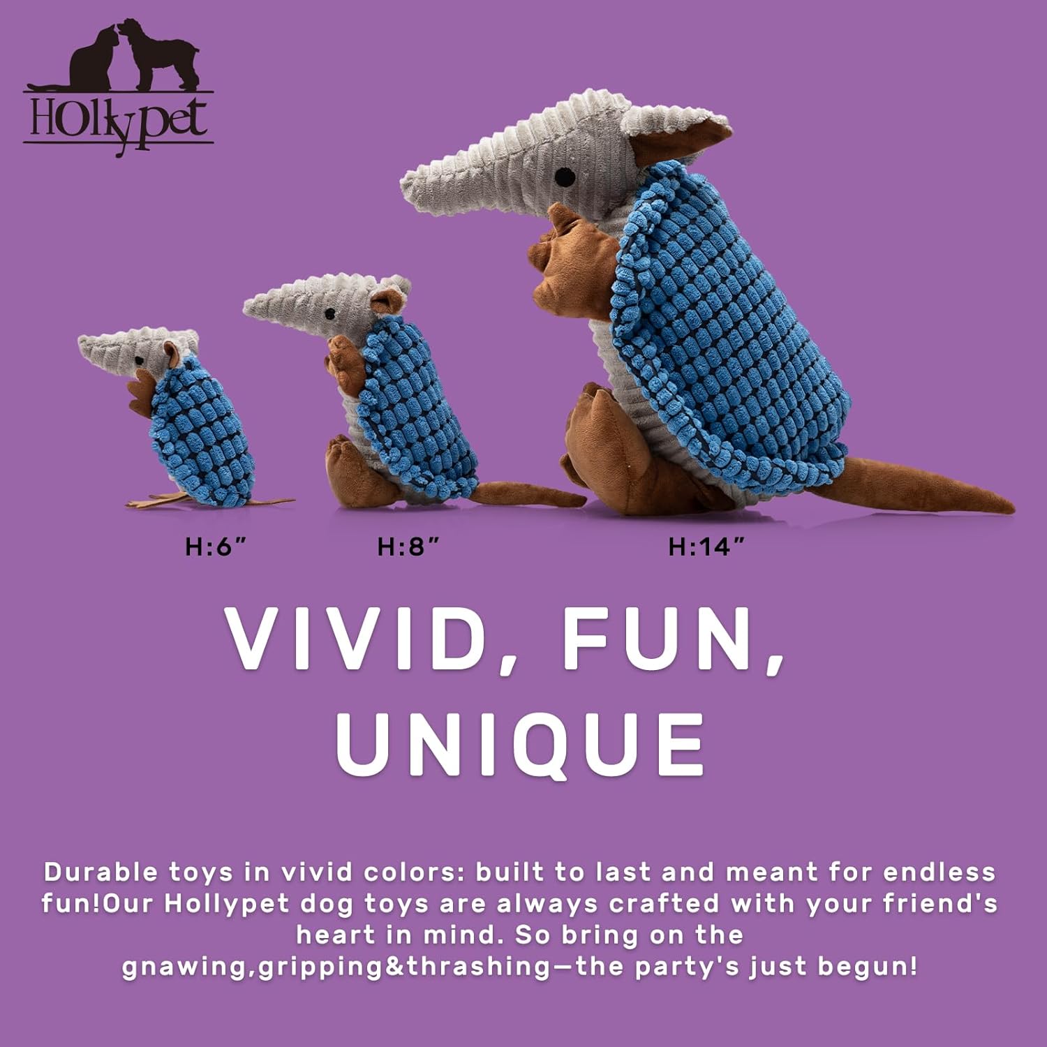 - Unique Sound - Hollypet Armadillo Squeak Toys (except 6 inch) make a sound that's not high pitched, but rather a unique and funny grunt sound that your furry friend will love. Unlike noisy bones, ropes, or other normal stuffed plush dog toys
