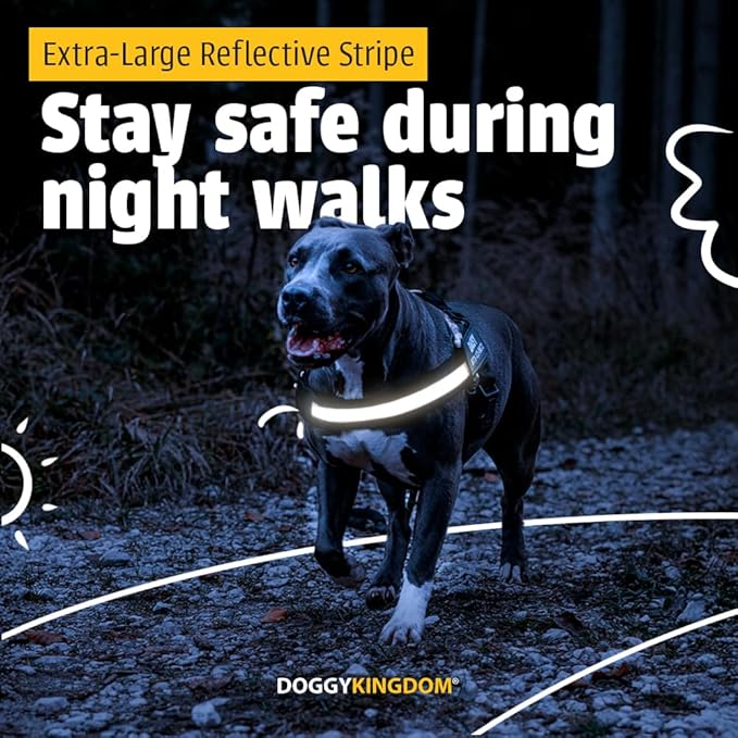 - MAXIMUM NIGHTTIME VISIBILITY - Our unique, extra-large 3M reflective stripe keeps your dog visible at night. Additionally, our heavy duty dog harness features a durable buckle and a stainless-steel D-ring for improved security.