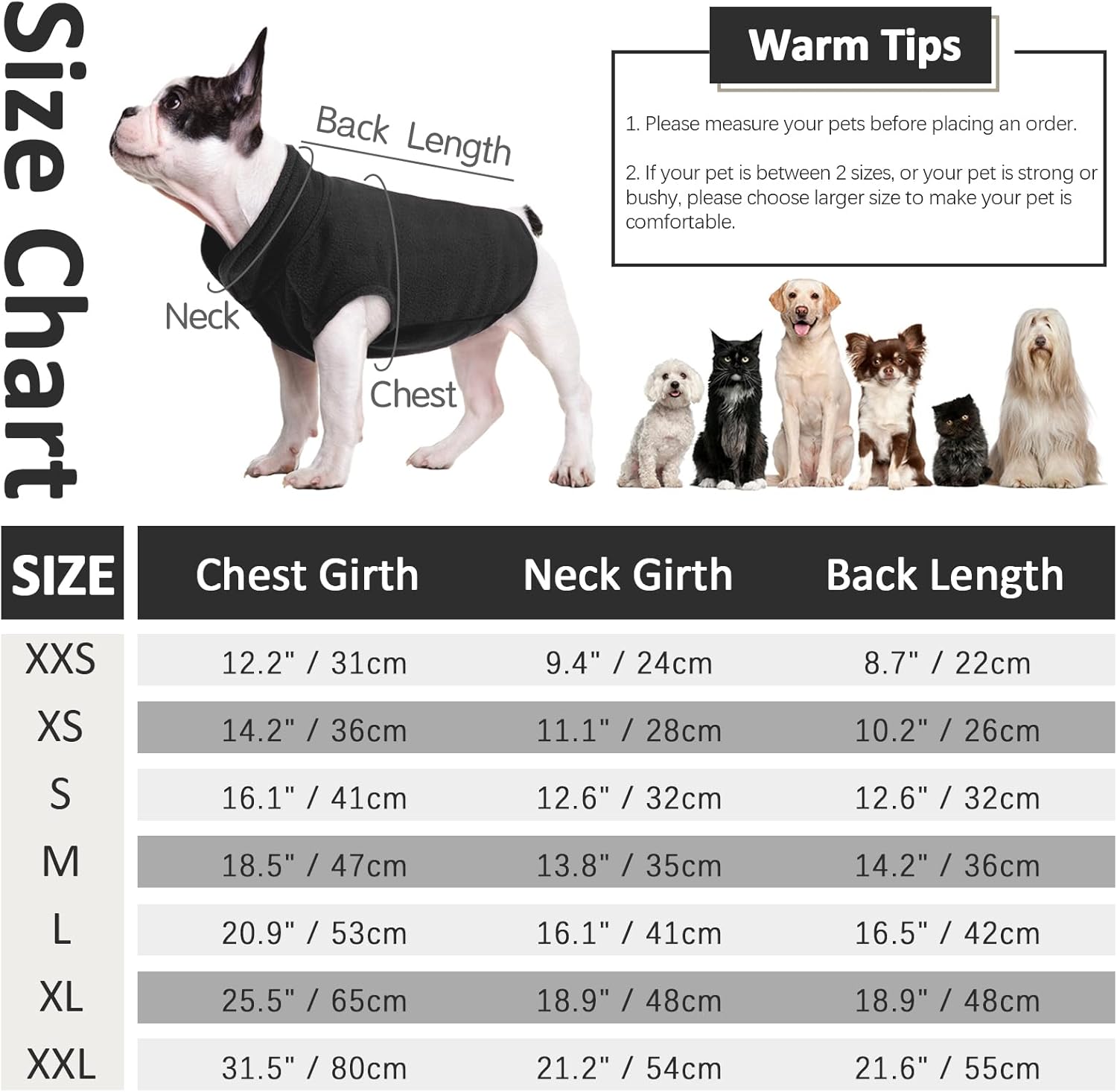 - Perfect Fit & 7 Sizes:FUAMEY dog fleece sweaters come in seven sizes, designed to fit most small, medium, and large breeds—XXS&XS for Chihuahua, Papillon, Maltese.S for Yorkie, Bichon Frise, Shih Tzu, Westie.M for Schnauzer, Pug, Jack Russell Terrier, Boston Terrier, French Bulldog.L for French Bulldog, Sheltie, Havanese, Shiba Inu.XL for Beagle, Cocker Spaniel, Corgi, Border Collie.XXL for Border Collie, Husky, Samoyed, Golden Retriever, Weimaraner, Norwegian Elkhound, Alaskan Malamute